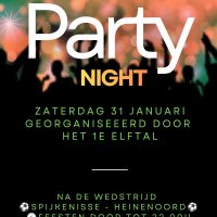 Het 1e elftal organiseert een feest in de kantine! Na de wedstrijd Spijkenisse – Heinenoord Zaterdag 31 januari 2026 Tot 22:00 uurKom gezellig langs om samen de wedstrijd na te bespreken en het feest mee te vieren! Mis het niet!
