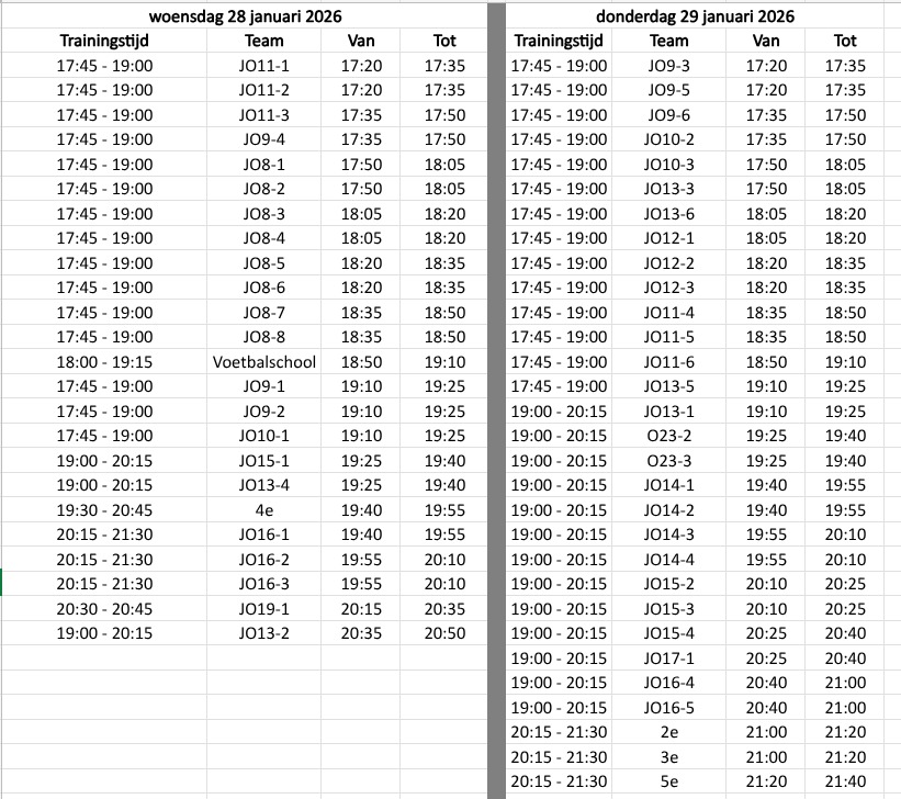 De momenten zijn zoveel mogelijk aansluitend op de reguliere trainingstijden. De exacte planning per team staat HIER