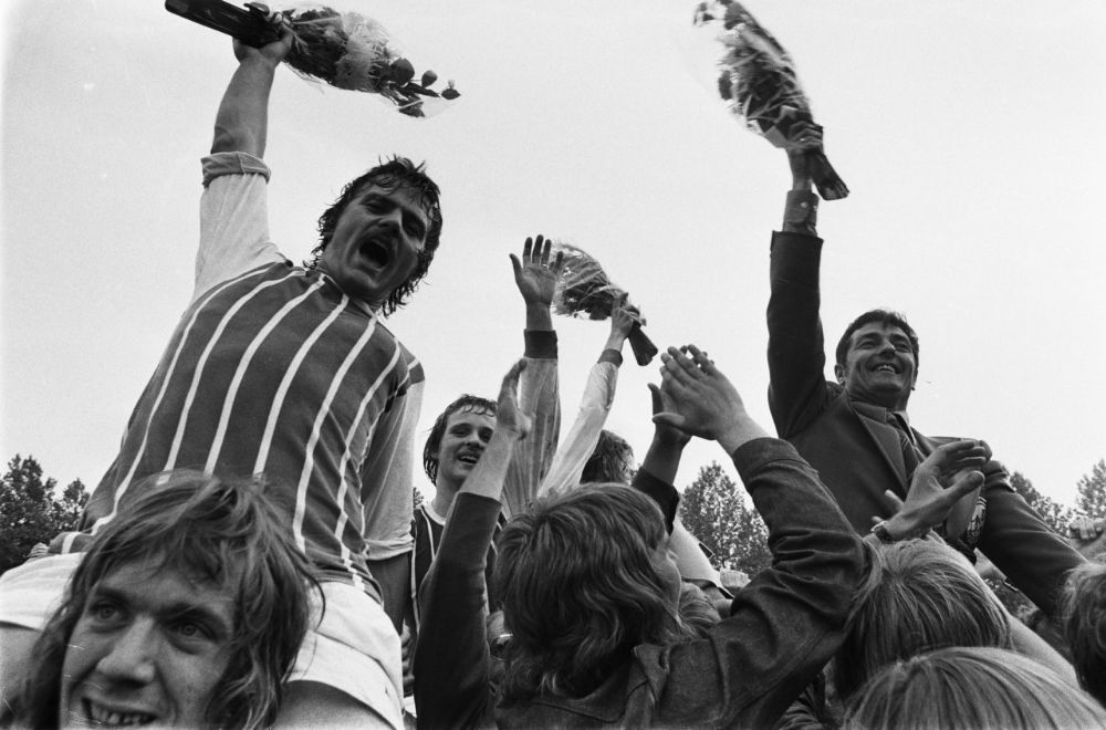 ,,De thuiswedstrijd beëindigden we met een ietwat teleurstellend 1-1 gelijkspel," weet Ad van Dongen nog en er klinkt nog steeds een lichte teleurstelling in zijn stem bij die constatering. ,,Maar, we gaven de moed niet op, integendeel. Arie van der Meer werd de personificatie van het optimisme en Cor Zwartepoorte verzette zelfs zijn geplande huwelijksreis om zijn steentje bij te kunnen dragen in de terugwedstrijd. Wat niemand voor mogelijk hield, gebeurde. We wonnen met 1-2 in Veenendaal en werden daardoor algemeen zaterdagkampioenschap."
